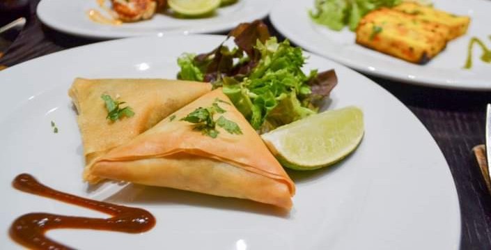 Enjoy 3pcs Veg Samosa, a perfect starter for any meal. Served with a fresh Starters Salad and a tasty Starters Sauce. Great choice for veggie lovers!
