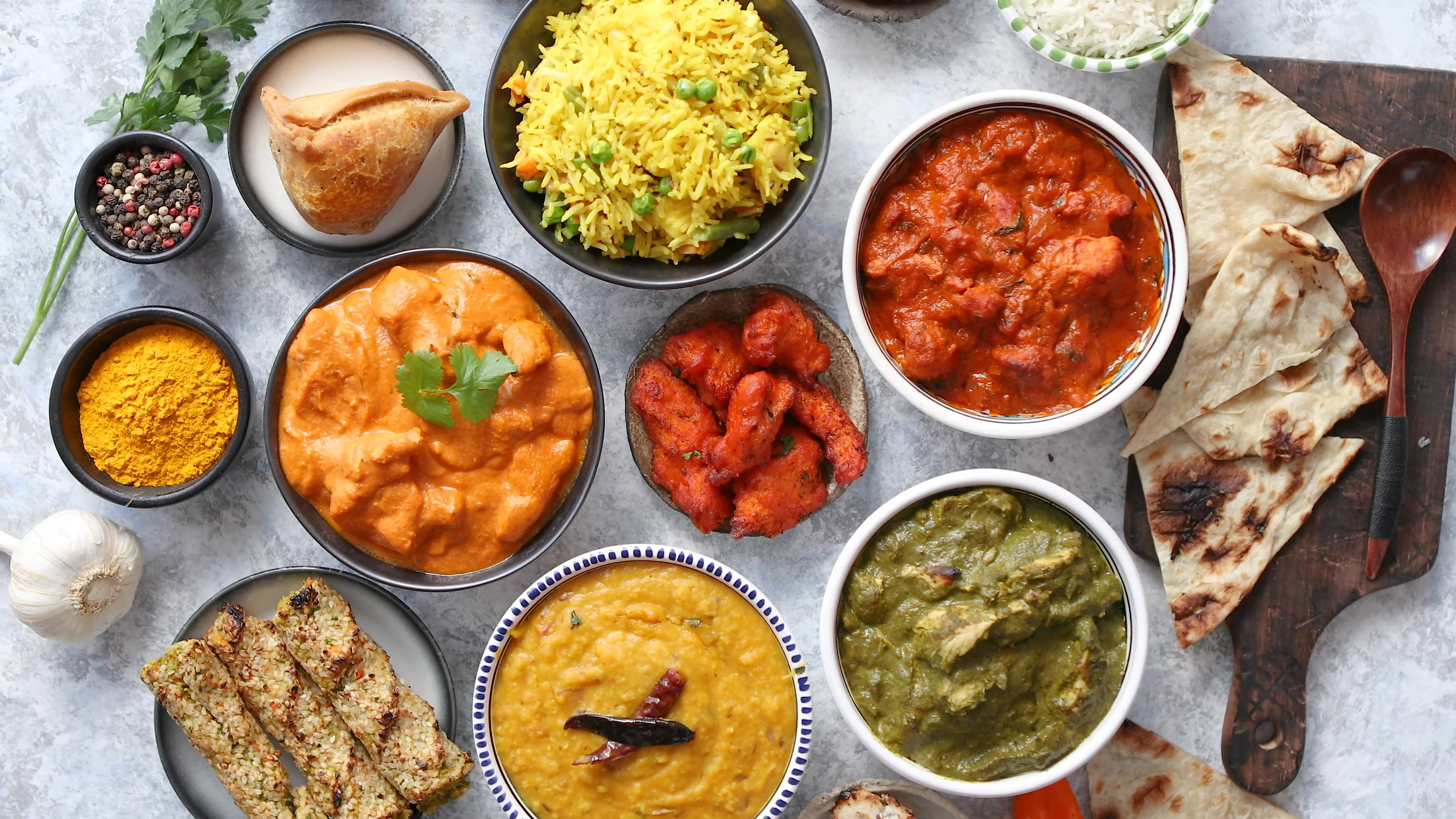 Includes 2 Poppadoms, 1 Chutney Tray, 1 Onion Bhaji, Pilau Rice